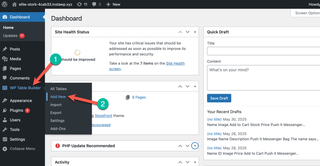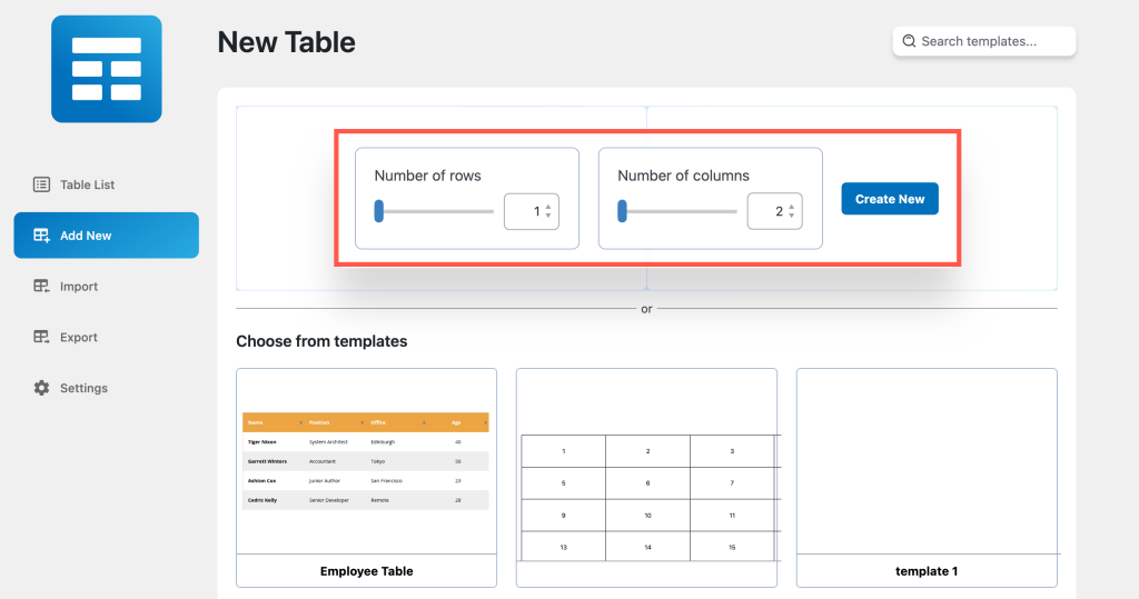 Go to your WordPress dashboard and click Add New under the WP Table Builder menu.