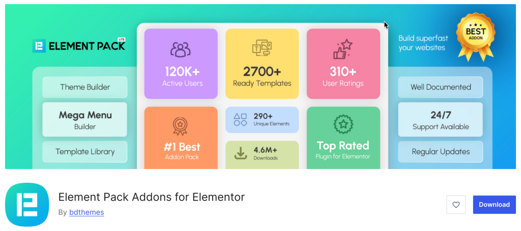 Elements Kit was an all-in-one addon, and Element Pack Pro is very much in that same league. Developed by BdThemes, it is arguably the most comprehensive addon library for Elementor, designed to give you total control over every section of your site – especially the footer.