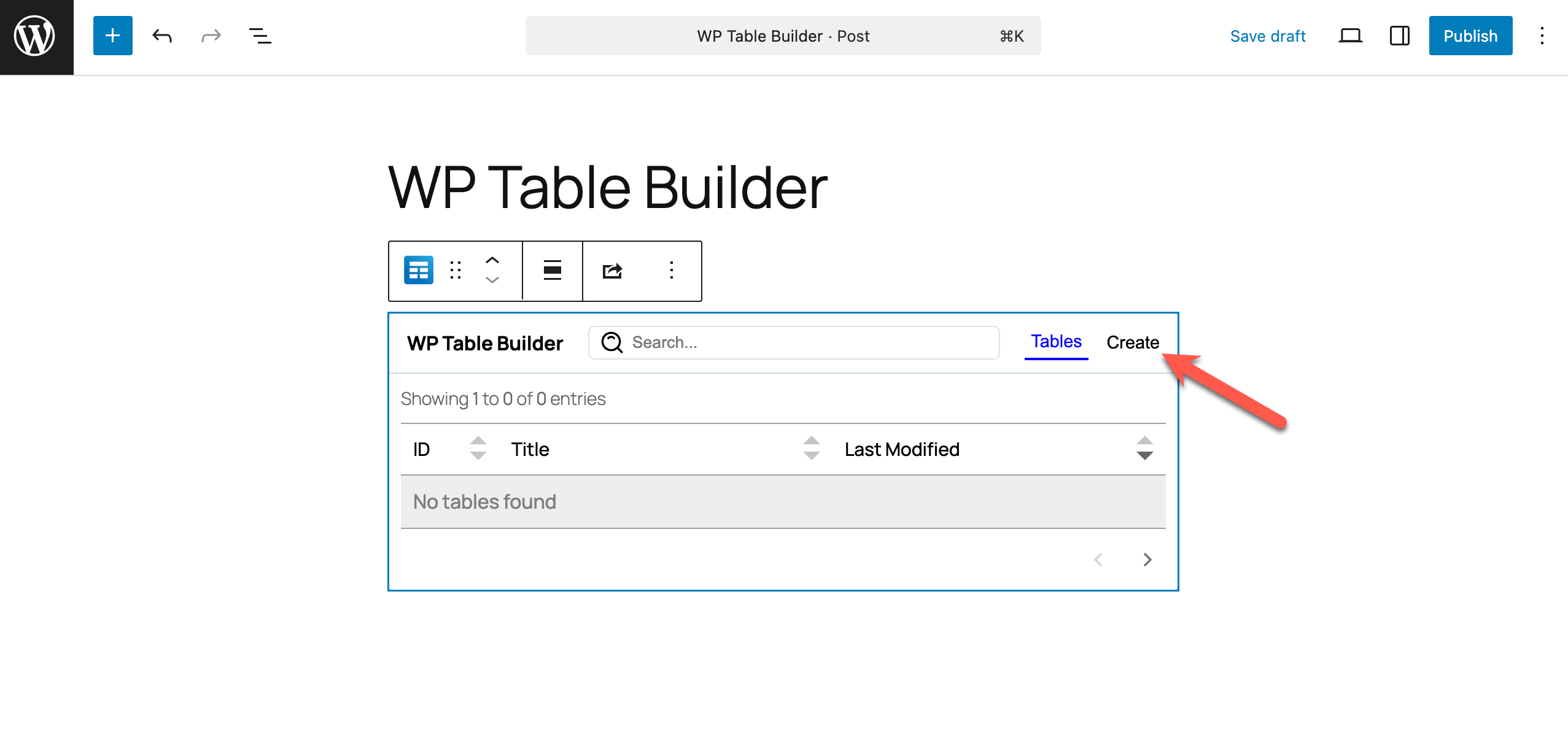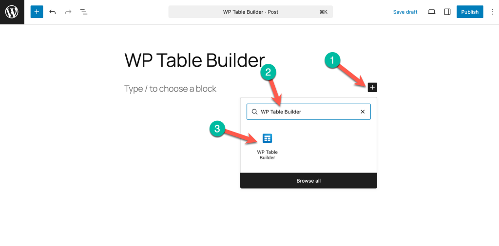 Step 2: Insert the WP Table Builder Block