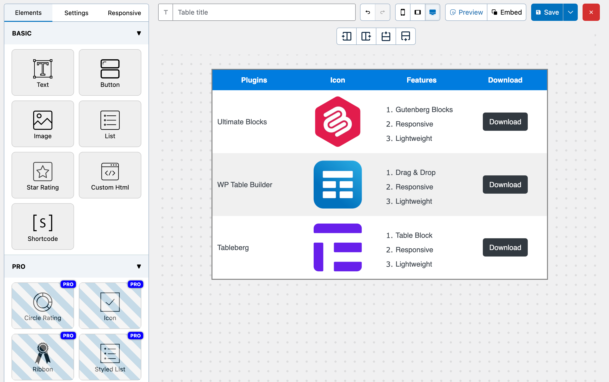 This interface is ideal for creating pricing tables, comparison tables, and feature tables with full control.