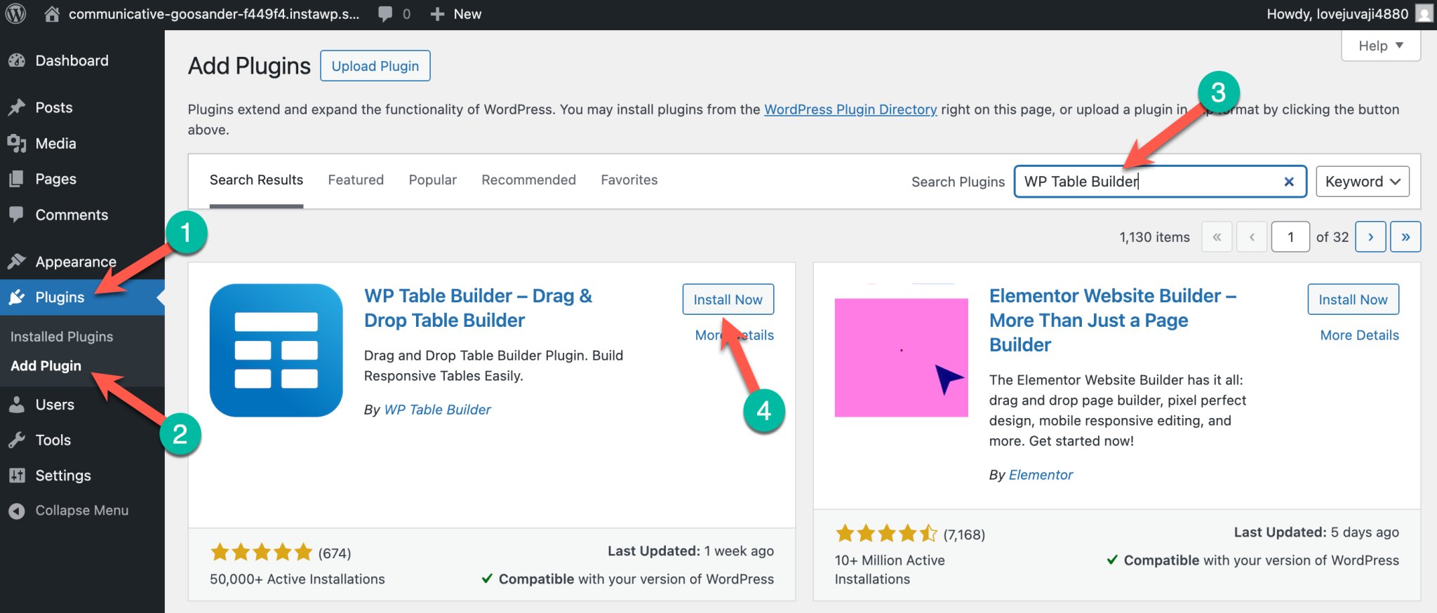 Step 2: Install and Activate WP Table Builder
