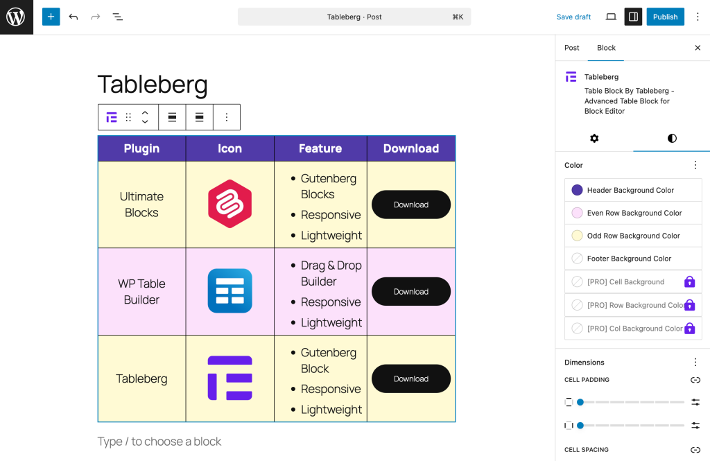 If the default Table block feels limiting, Tableberg is the natural next step. It’s a block-based table plugin designed specifically for the Gutenberg editor, allowing you to build advanced tables without leaving the Block Editor.