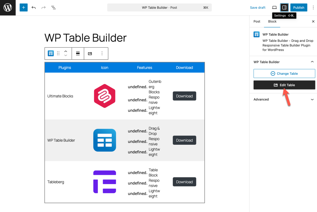 WP Table Builder Ideal if you need advanced, drag-and-drop tables and want to reuse them across different editors. It works with page builders, supports shortcodes, and also includes a Gutenberg block that lets you create and manage tables directly inside the Block Editor.